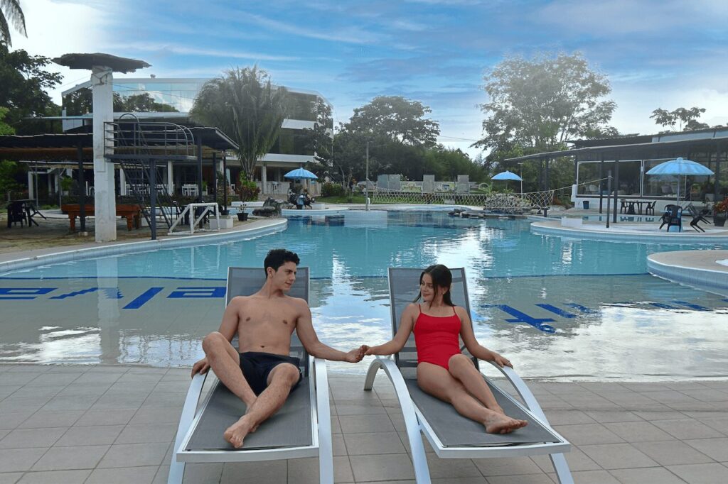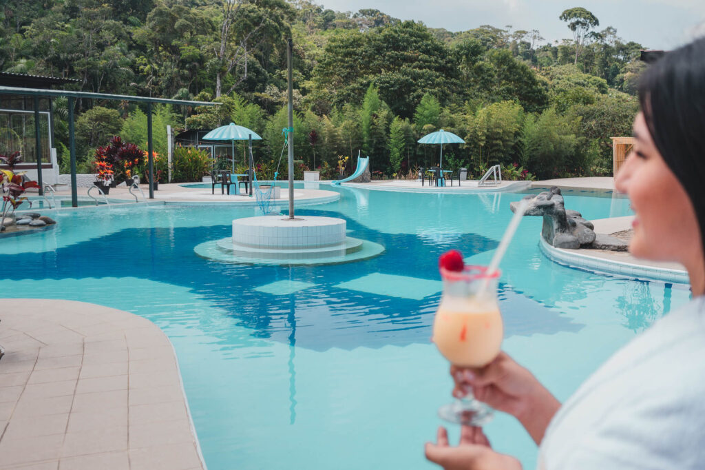 La zona de piscinas del Hotel EcoPark está rodeada de la exuberante vegetación amazónica, creando un ambiente natural y sereno. Todas nuestras instalaciones cumplen con las más estrictas medidas de seguridad, asegurando que tu experiencia sea tanto placentera como segura.